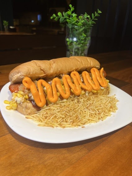 Pão, Purê, Milho, 3 Molhos Especiais, Vinagrete E Batata Palha, Cheddar, Salsicha