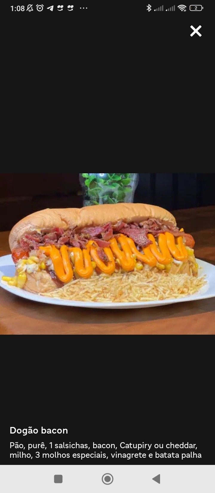 Pão, Milho, Vinagrete, 3 Molhos Especiais, Salsicha, Palha, Purê, Bacon, cheddar cremoso