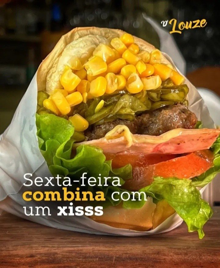 Pão, Hamburger De Costela, Queijo, Alface, tomate, vinagrete, milho.